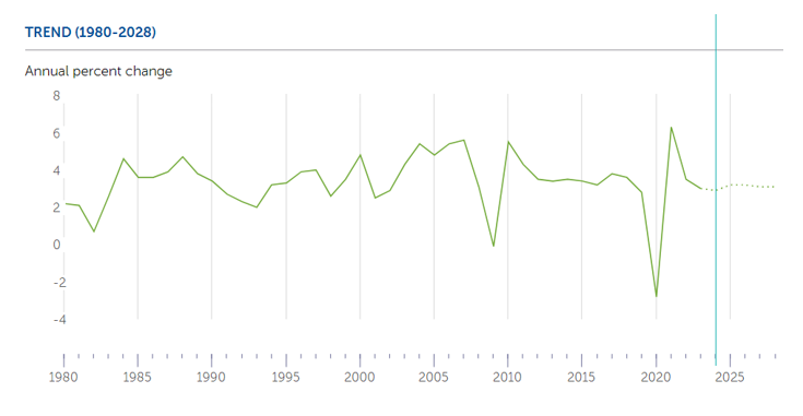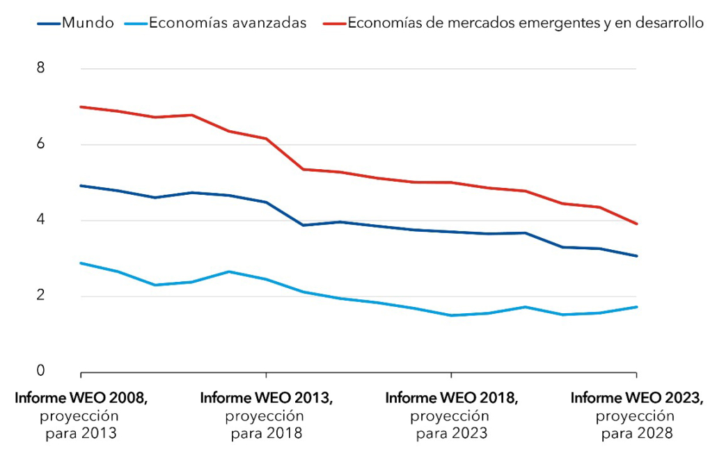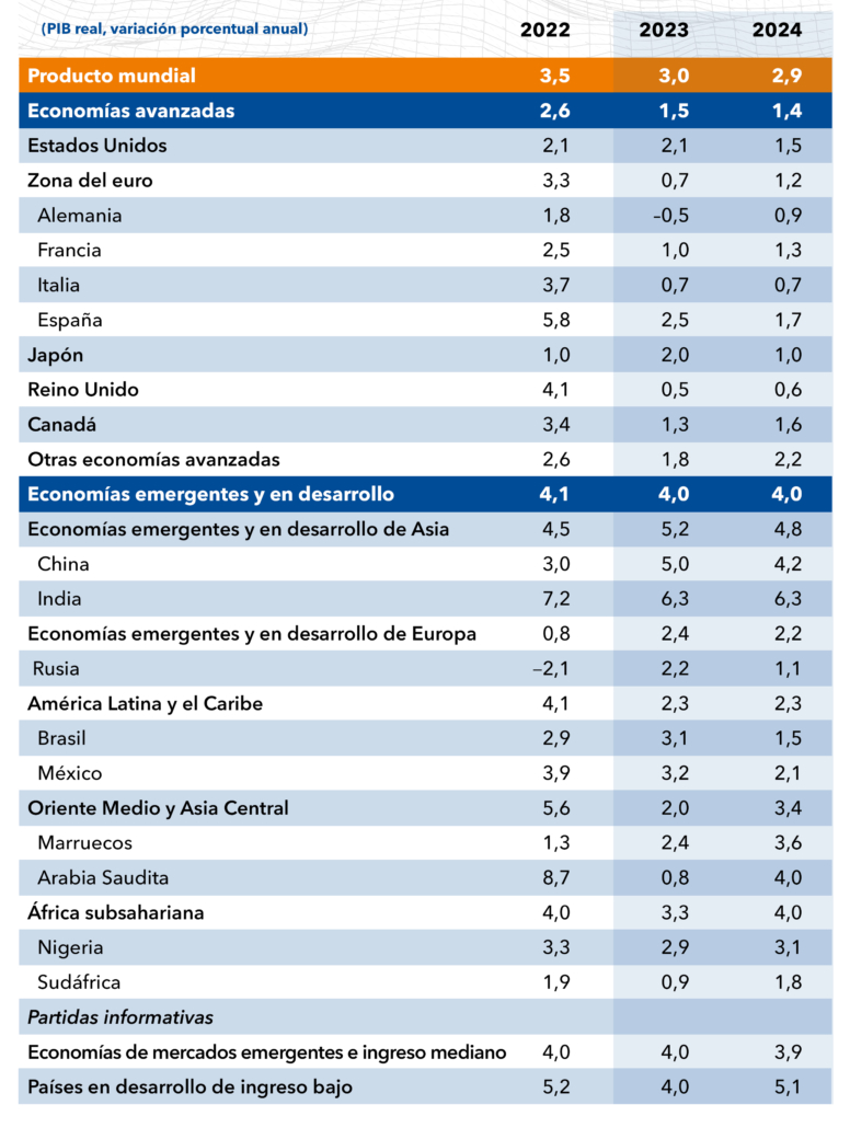 Según los expertos, todo parece indicar que el próximo año será positivo para el crecimiento de la economía y de las empresas. La economía mundial continúa recuperándose aunque su avance se ha ralentizado, es lento y desigual, con crecientes divergencias. Según el Fondo Monetario Internacional (FMI), el crecimiento económico mundial se desacelerará de 3,5% en 2022 a 3% este año y 2,9% el próximo, porcentaje que supone una revisión a la baja de 0,1 puntos porcentuales para 2024 con respecto a las previsiones publicadas en julio. Estas cifras están muy por debajo del promedio histórico.