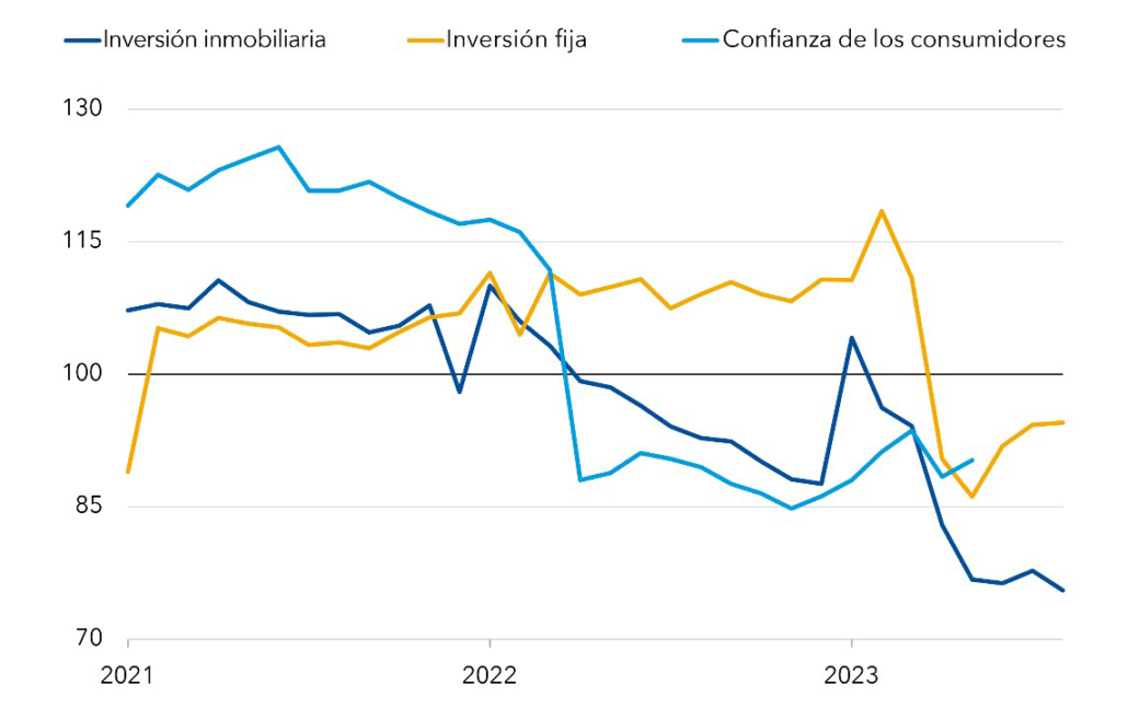 (índice; inversión: dic. 2019=100; confianza de los consumidores): >100 optimista)